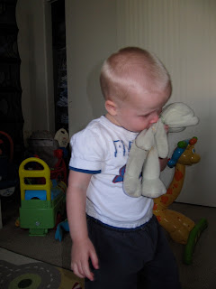 It was driving us all crazy so we buzzed it. Can you see it?The kid refused to hold still for a picture. Mean old mom had to force him.