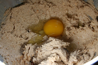 1. In a large bowl, cream the shortening, peanut butter, sugar and brown sugar until they are light and fluffy then add in the vanilla and egg.
