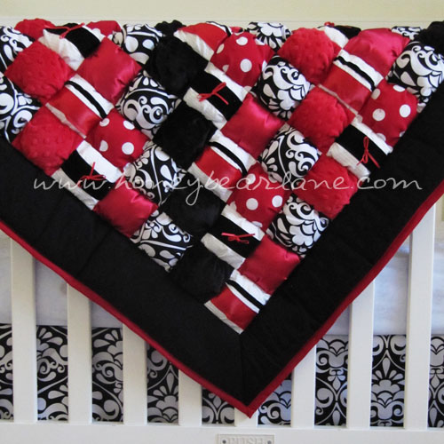 I love puff quilts, they are really original. I don't have a reason to make one at this time however, I hope one of my friends get's knocked up so I can make one. I really like how rich the red looks with the black and white.