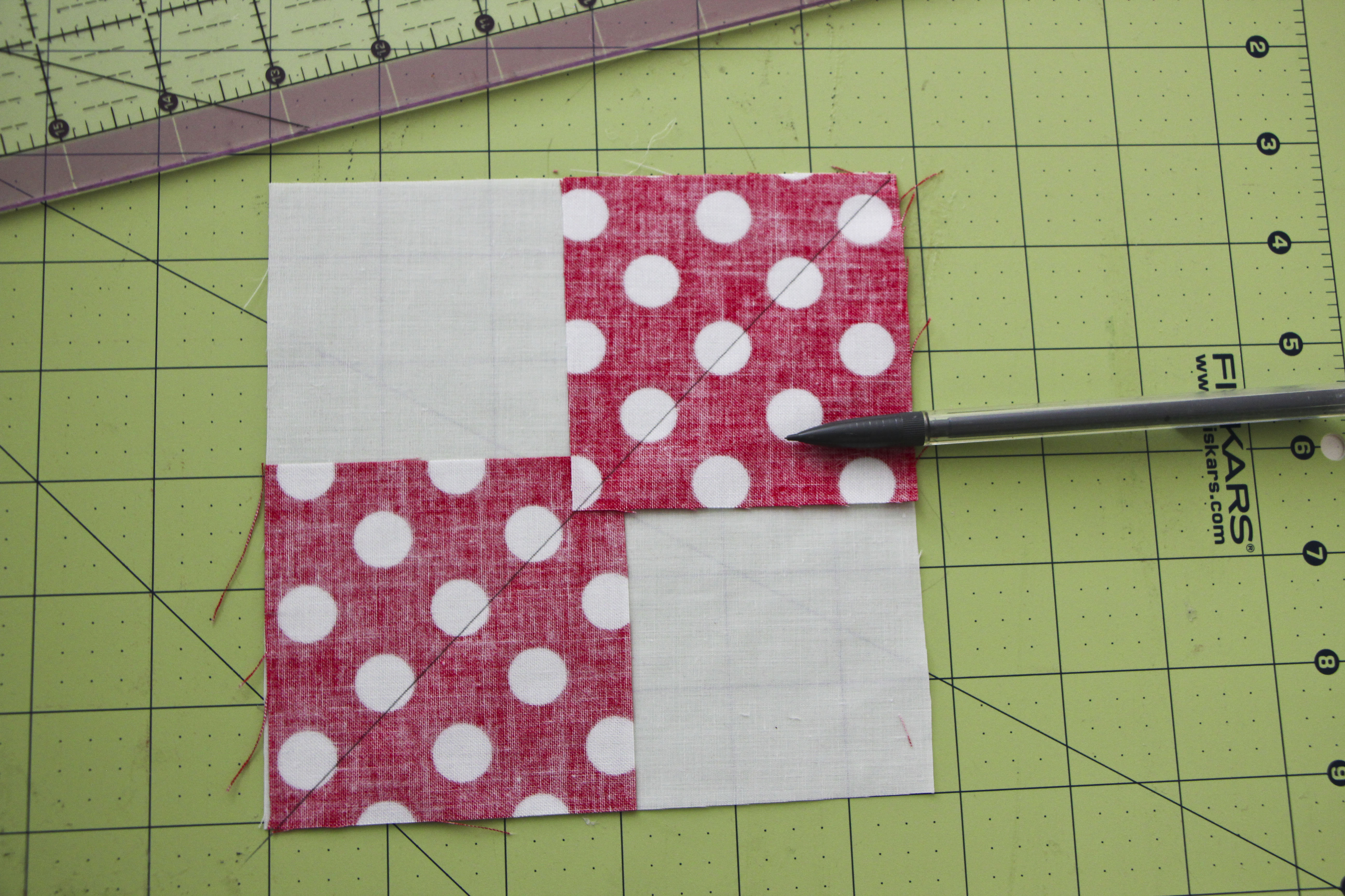 Then use a ruler to draw a line down the middle of the squares.